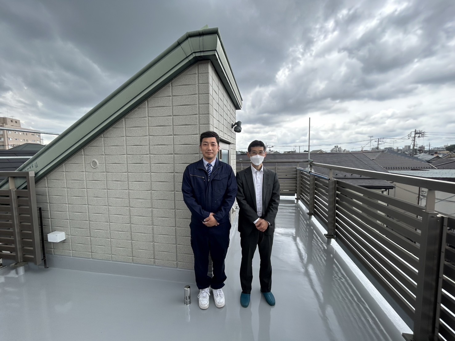 「夏の暑さ対策をしたい」とのことで高反射の塗料を使用したウレタン防水を提案