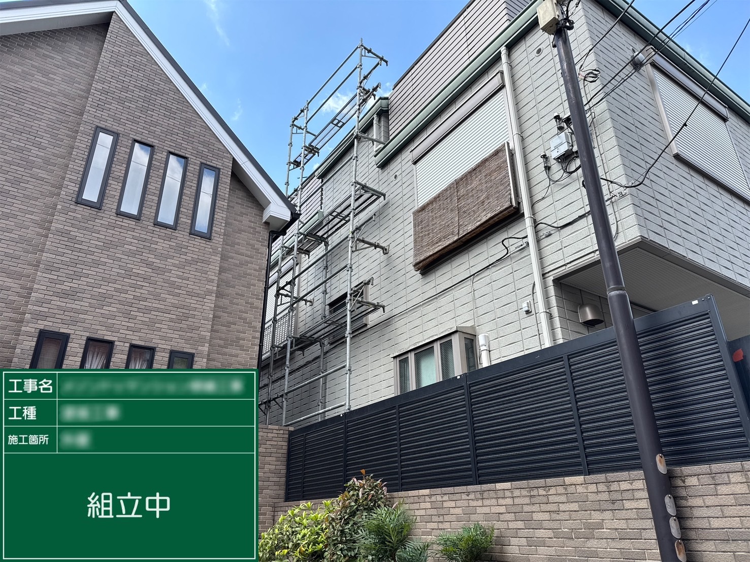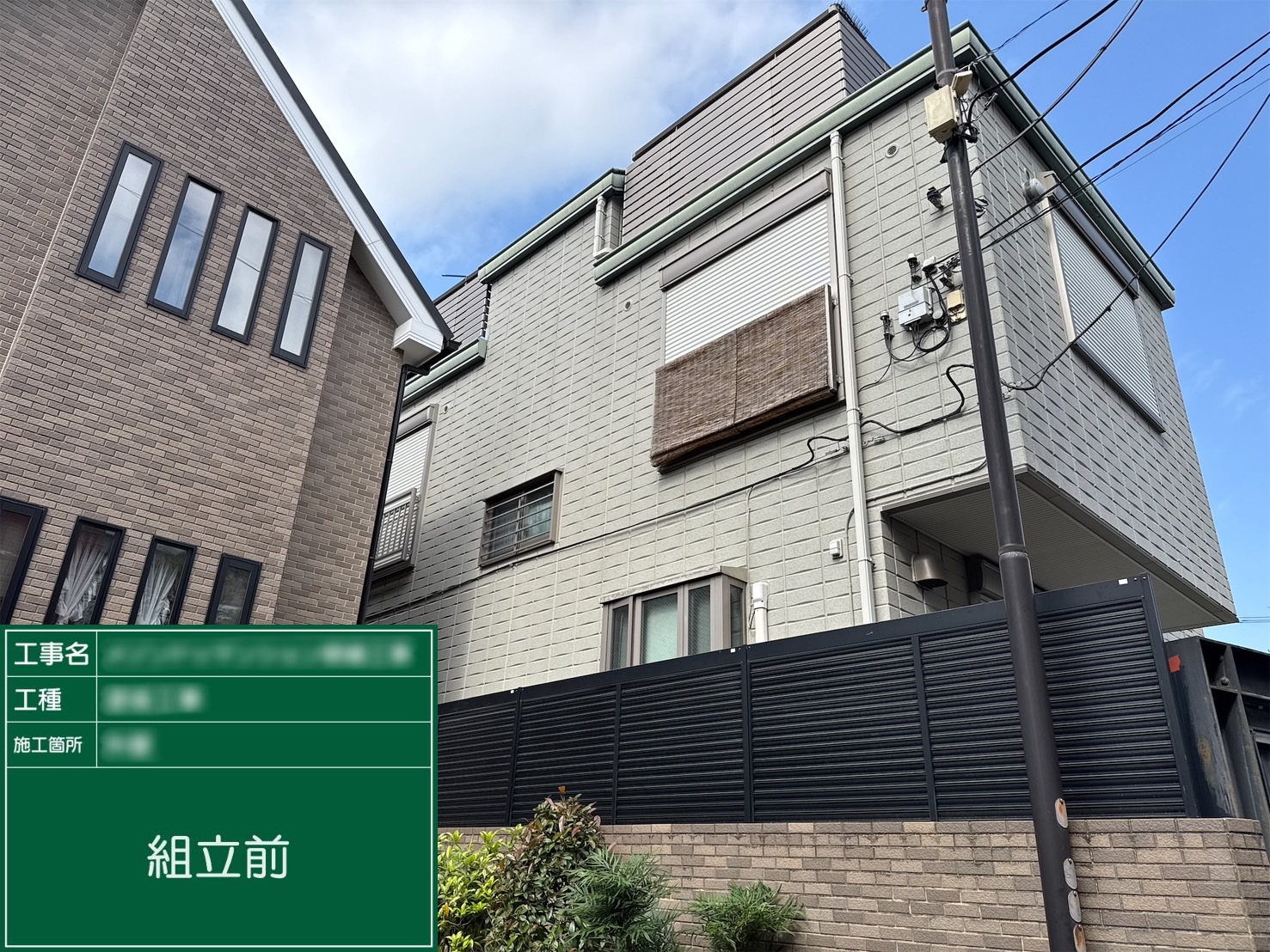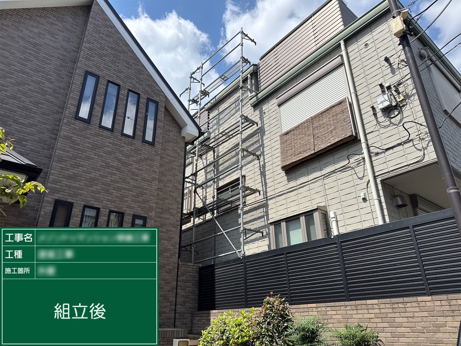 しかも防水やる時流石に塗料持って家の中に入れないしこぼしたら大変だから 昇降用の足場組むんですよ