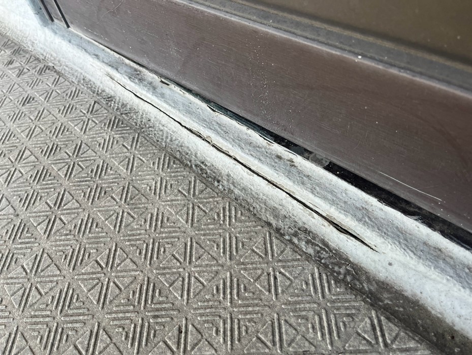 高井の声:これ既存が長尺シートっていうシートを貼られているんですが、結構切れちゃってますよね。こういう所とか。。。