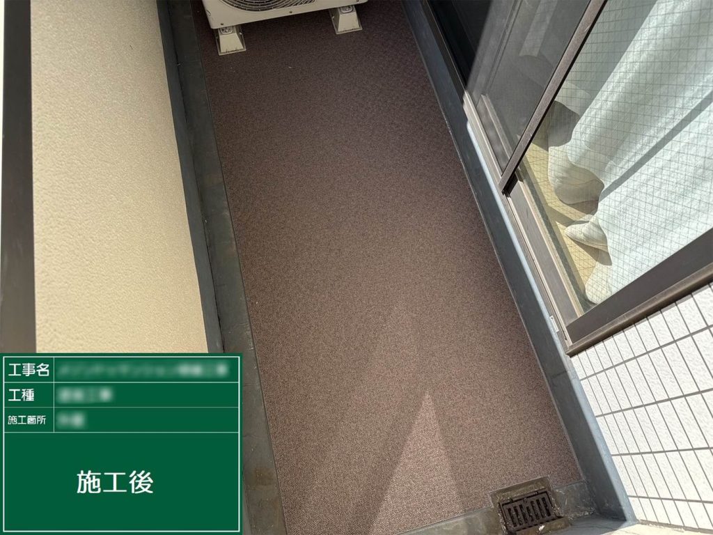 工事中にはバルコニー長尺シートの追加依頼もあり、柔軟に対応。施工後は写真付きの報告で安心していただけました。