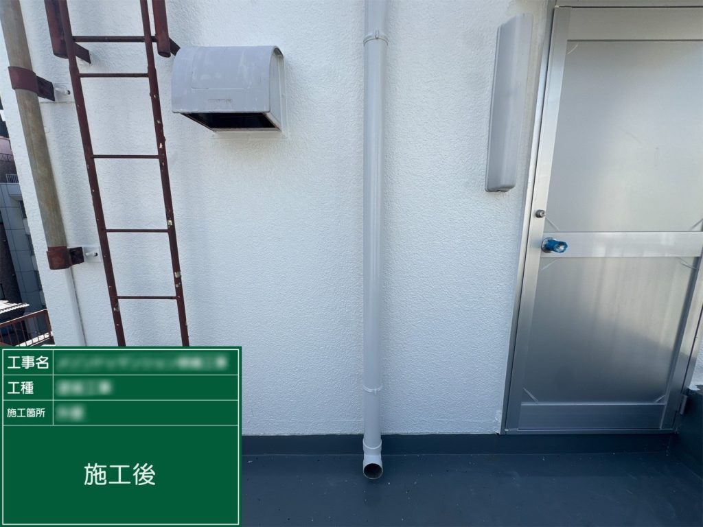 千代留の声:ありがとうございます。こういった手摺や雨樋も綺麗に塗装させてもらいましたが屋上の手摺は除外とのことだったので塗っておりません。