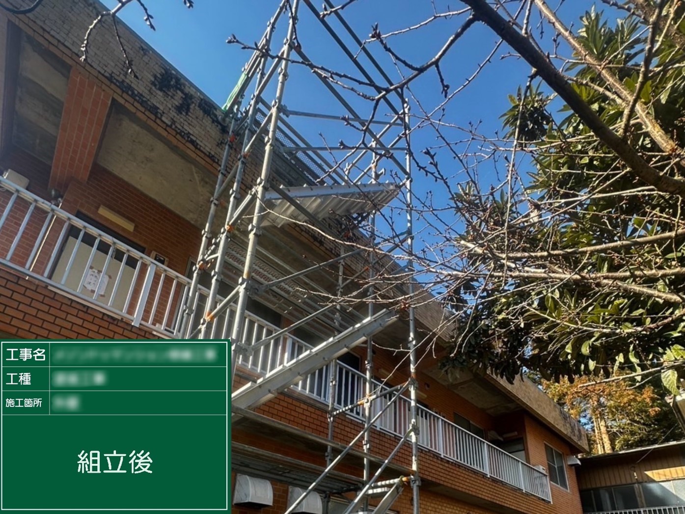 屋上へ上がれない構造のため、昇降用足場の設置も追加しました。