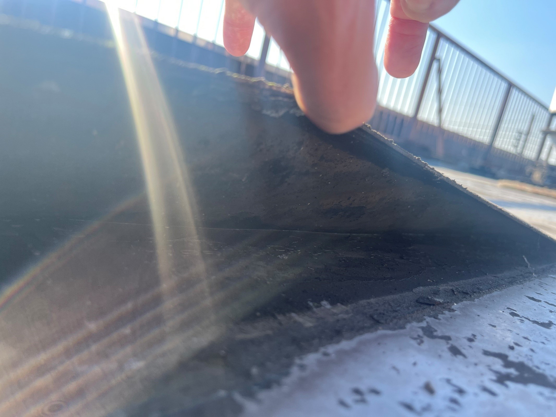 屋上を調査した結果、既存の防水シートが複数層に重なり、いたる所で破れが発生。