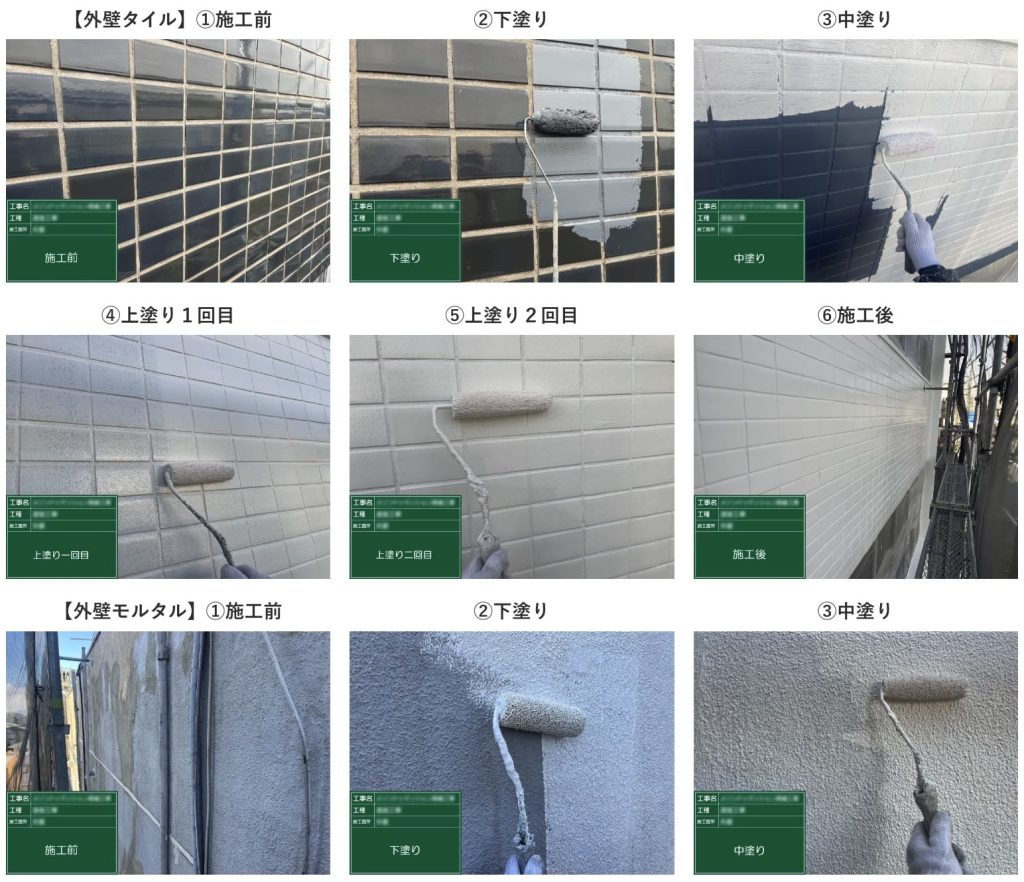 外壁は下地補修を丁寧に行い、タイル面の白色塗装も実現しました。