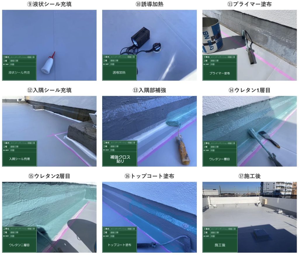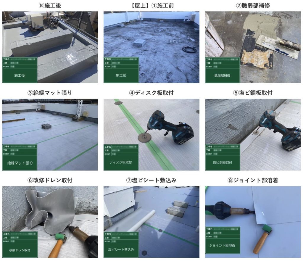 屋上防水は費用対効果の高いハイブリッド工法を採用し、塩ビシートとウレタンを使い分けることで高い防水性能を確保しました。
