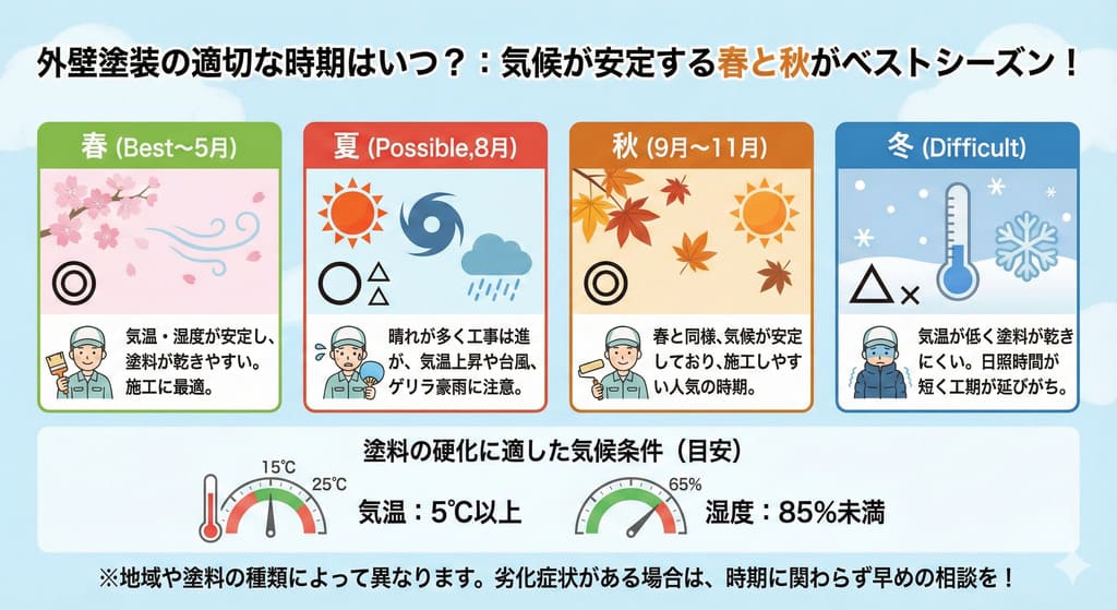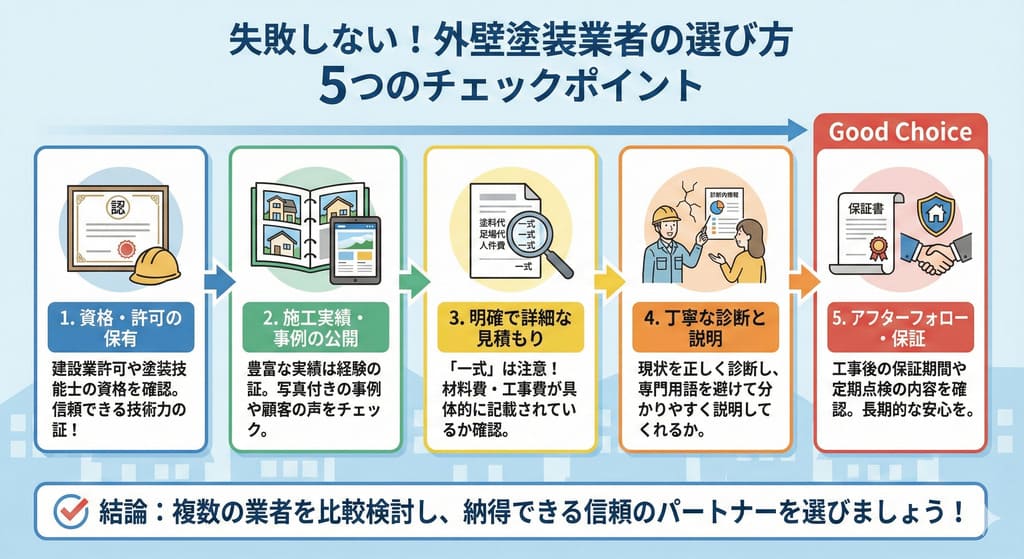塗装時期の見極め方、塗料の種類と選び方、費用相場、助成金の活用方法、さらには業者選びの注意点まで、この記事を読めば外壁塗装に関する疑問がすっきり解決します。