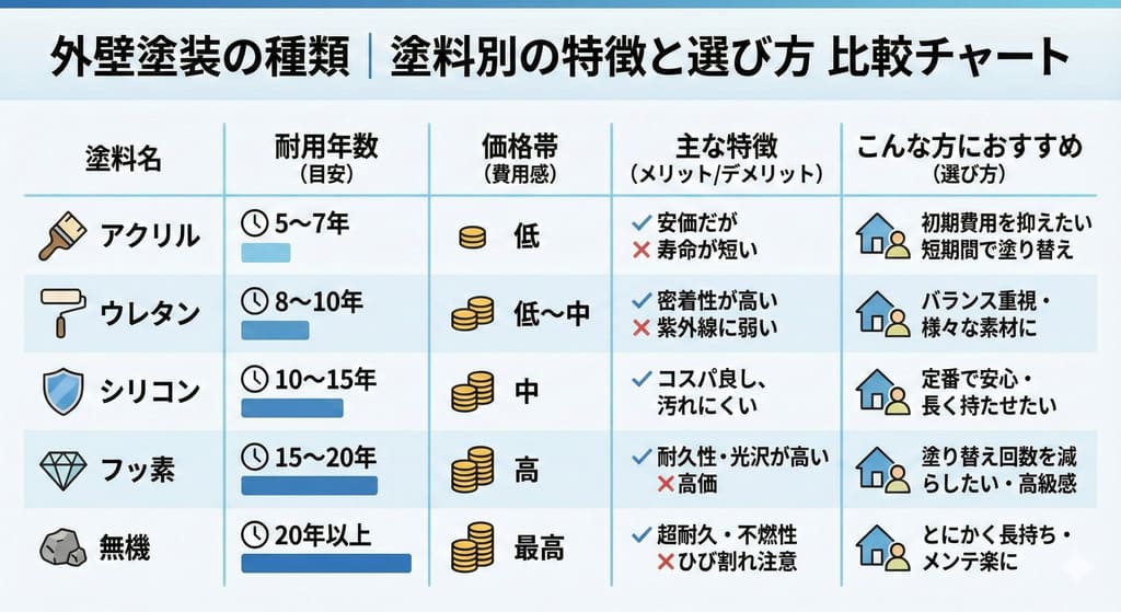 長期的な耐久性を重視するなら、フッ素塗料や無機塗料もおすすめです。