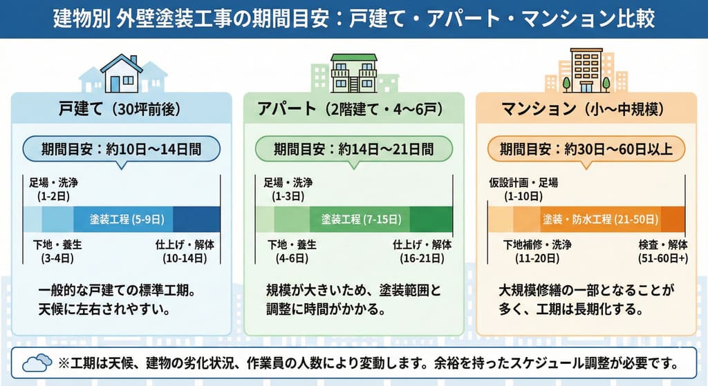 以下の表に、住宅タイプ別の費用相場をまとめました。