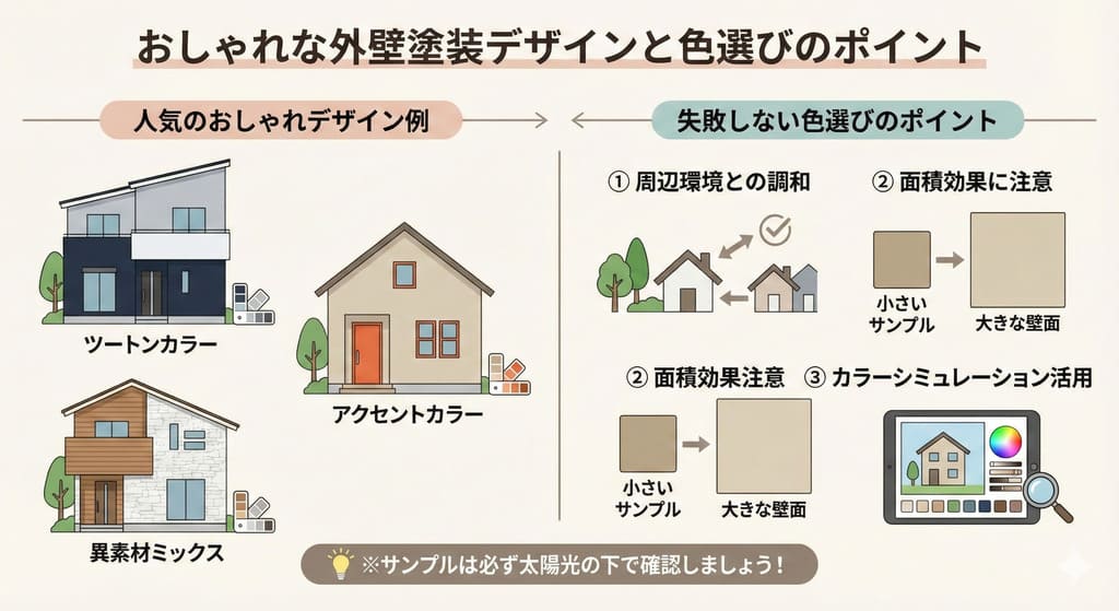 外壁塗装で最も人気の色はベージュ系です。温かみがあり、どんな街並みにも馴染む万能色として選ばれています。