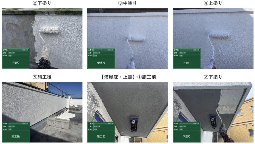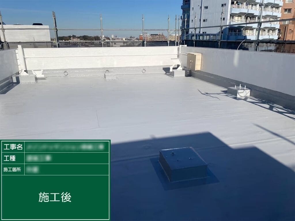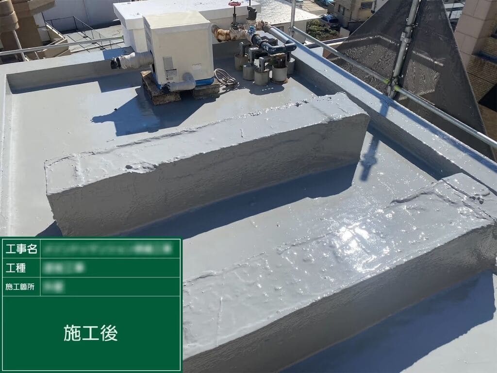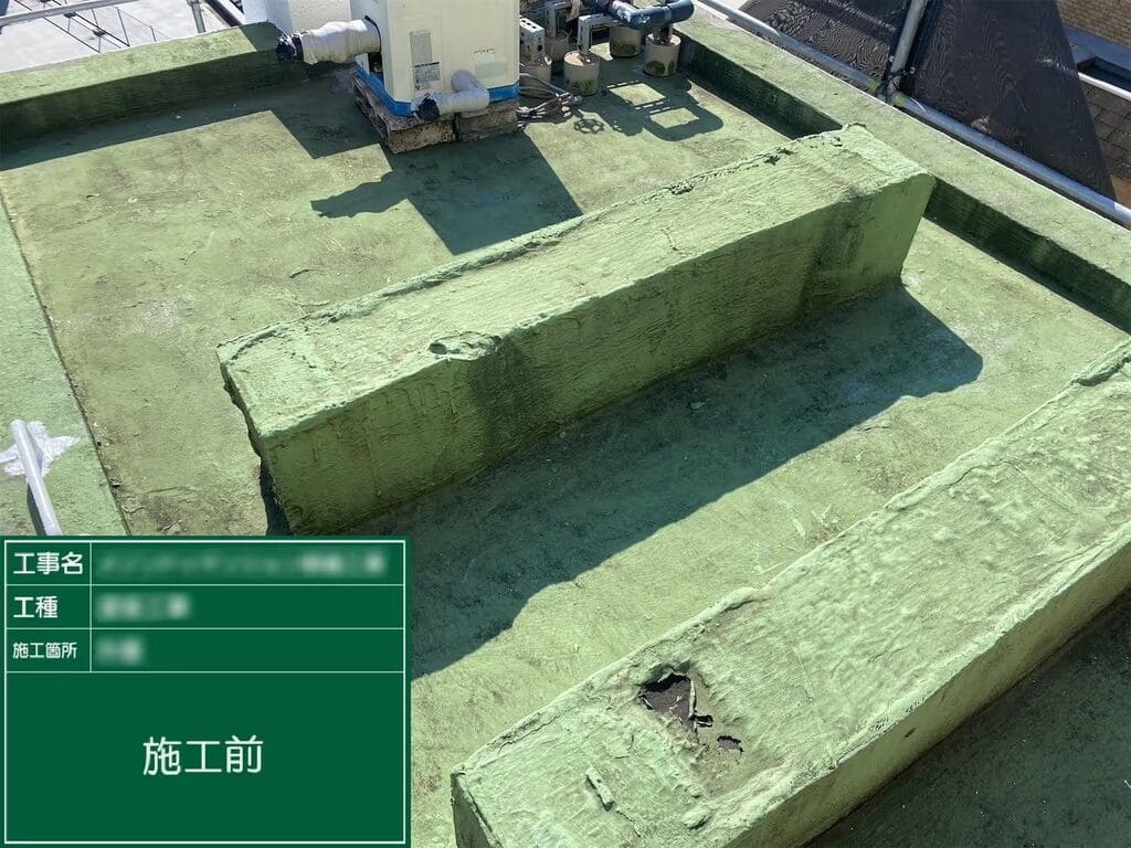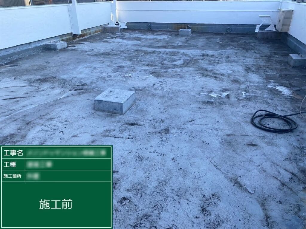 前オーナーの施工履歴が不明で劣化が進んでいた状況に対し、ハイブリッド工法での防水と丁寧な下地補修で対応。