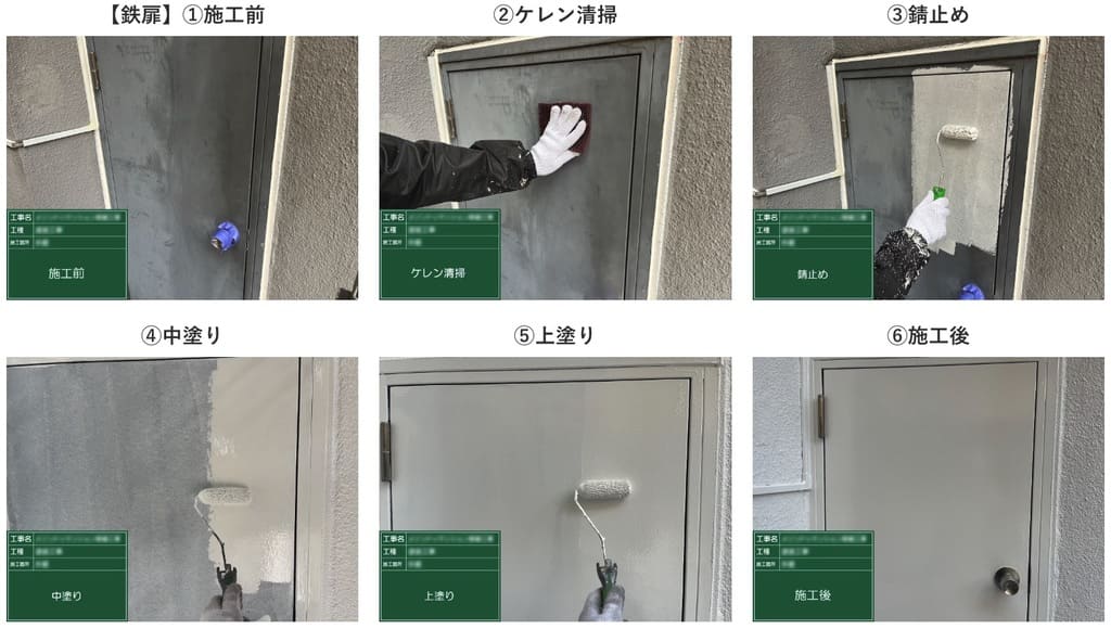 工事担当の熊倉への引き継ぎ後、迅速に打ち合わせを設定し、塗装色(N-93)、防水トップコート色(グレー)、鍵・電気・水道の使用場所、材料置き場、駐車スペースなどを確認しました。