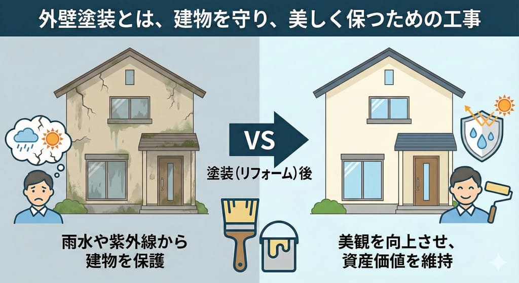 外壁塗装は、建物を長期間守り、資産価値を維持するための重要なメンテナンスです。