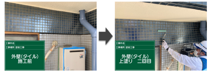 タイルにクリア塗装を行うことで光沢が増し、タイルや目地の保護にもなります。