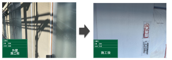 足場の設置から洗浄、塗装、完了検査まで、各工程ごとに写真付きの報告書をお送りし、工事の進捗を常に共有しました。