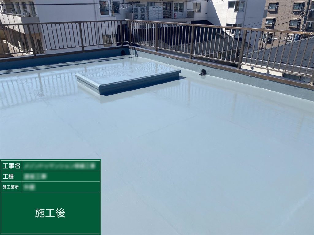 シート防水は、塩化ビニル系や合成ゴム系の防水シートを接着剤や熱溶着で屋上に貼り付ける工法です。工期が短く、工事の際の騒音や臭気も比較的少ないため、居住者への負担を抑えたい場合に適しています。また、軽量であるため既存の構造に負担をかけにくいのも特徴です。